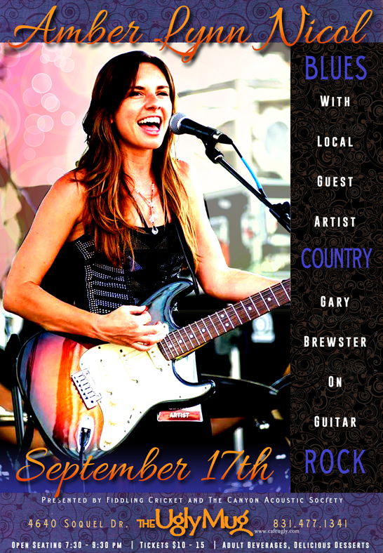 OR contact Fiddling Cricket at 408 499 9441 or Brundle@attglobal.netAmber Lynn Nicol, based in St Petersburg, Florida, is a 27 year old songwriter and originally classically trained vocalist, who has a love of blues, rock and country. After initially touring with a rock band as the bass player and back up vocalist, Amber cut her first CD in 2011 and has just released her third, which was funded by her fans through Kickstarter. She is already an old-hand at touring, having played 130 clubs, festivals, and radio stations in 2013, and is currently touring in support of the new CD. http://www.amberlynnnicol.com