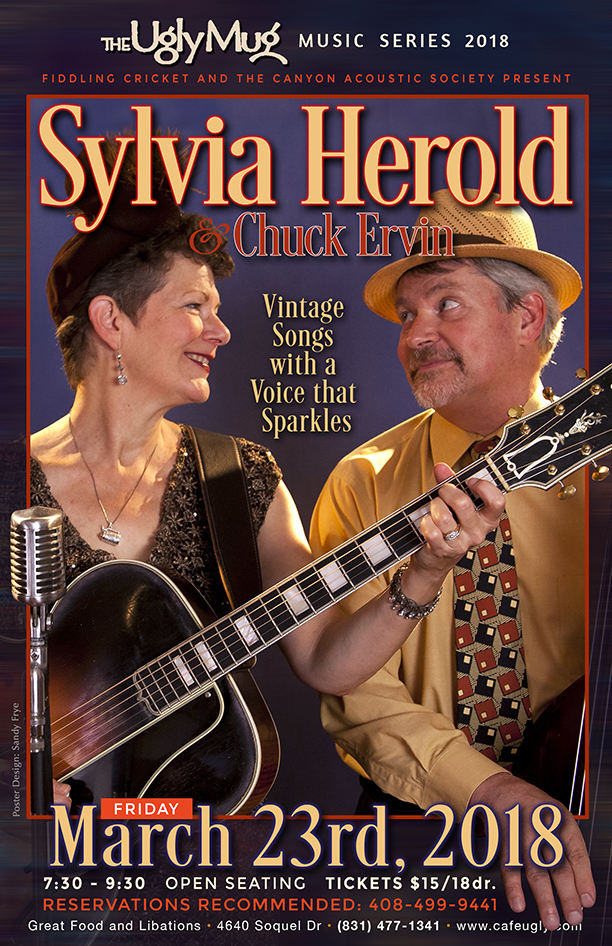 Contact Fiddling Cricket at 408 499 9441 or crbrundle@gmail.com for reservations or more information.Bay Area singer, guitarist, and song sleuth Sylvia Herold mines the motherlode of American jazz and popular song from the 1930s through the 1960s. Songs of wit and romance by composers Cole Porter, Hoagy Carmichael, George Gershwin, and Harold Arlen are lovingly rendered in a voice the San Francisco Examiner calls "mesmerizing." Herold was a member of the much beloved swing vocal trio Cats & Jammers, and of The Hot Club of San Francisco. Currently, she tours and records with Wake the Dead, The Lonestar Retrobates and The Sylvia Herold Ensemble. She has appeared on more than 25 albums, including five solo recordings. Herold is a resident teacher at the Freight & Salvage Coffeehouse in Berkeley, Calif., and teaches guitar and voice at adult music camps across the U.S. http://www.sylviaherold.com